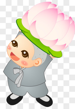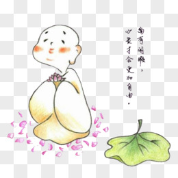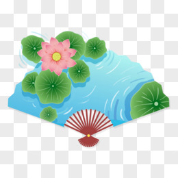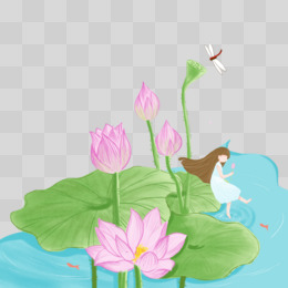 手绘卡通小清新水彩可爱绿色盆栽荷花夏至免扣