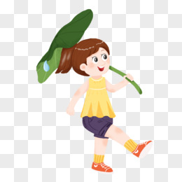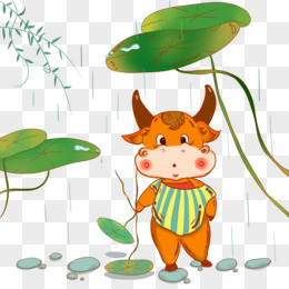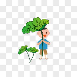卡通手绘雨水节气男孩顶着荷叶场景元素