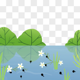 手绘卡通小孩子们抓蝌蚪场景免抠素材
