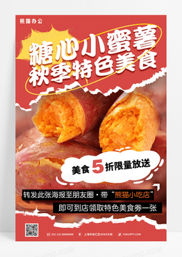 简约撕纸风糖心小蜜红薯美食海报糖心小蜜薯
