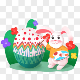 手绘复活节主题之画彩蛋的兔子