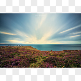 蓝天白云紫色小花