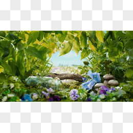 绿树叶小花蘑菇蓝天