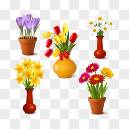 手绘剪纸风一盆黄色郁金香盆栽免抠元素