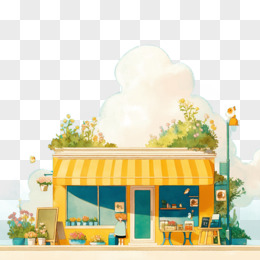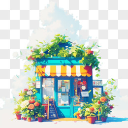 卡通手绘植物花卉小店元素