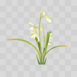 一组手绘国潮风花卉植物之兰花草元素