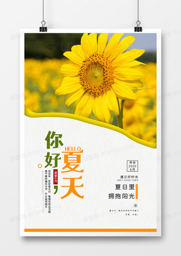 简约大气夏天你好向日葵宣传海报