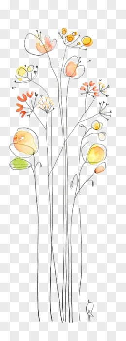 手绘简约局部晕染花卉简笔画免抠素材