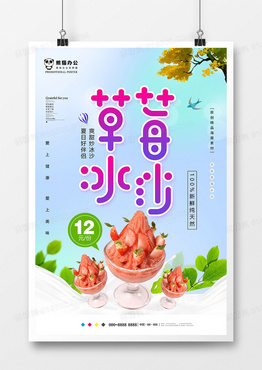 小清新草莓冰沙美食海报