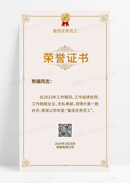 大气米黄色小清新荣誉证书奖状
