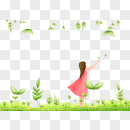 卡通手绘免抠小女孩小男孩一起玩风车元素