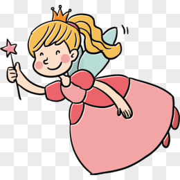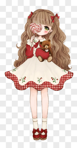 手绘卡通马尾辫小女孩吹气球免抠元素