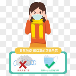 卡通手绘一次性口罩佩戴方法正确示范元素