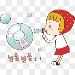 中秋节之手绘卡通女孩跟小兔子一起赏月