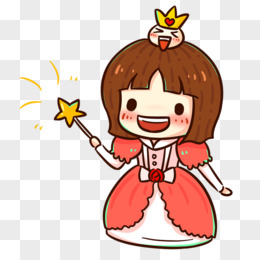 卡通手绘女孩手拿气球开心笑着免抠元素