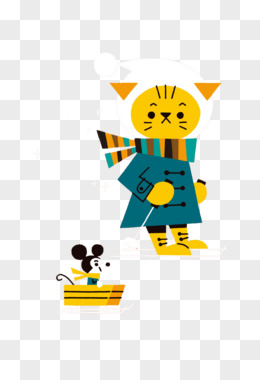 手绘卡通猫抓老鼠免抠元素