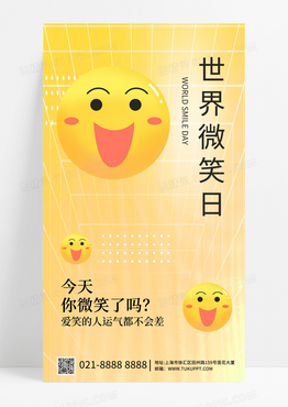 简约黄色卡通笑脸世界微笑日ui手机海报