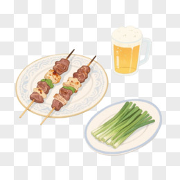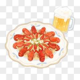 卡通插画风夏日美食烧烤啤酒小龙虾夏日美味免抠元素