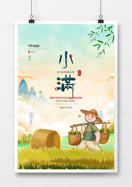 手绘卡通插画风农民伯伯手捧金色麦子免抠元素