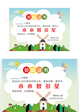 卡通小清新小木屋幼儿园儿童荣誉证书奖状