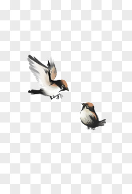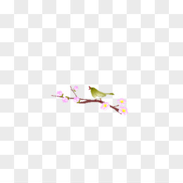 手绘国潮风站黄鹂鸟和花枝免抠元素