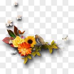 水彩画两只彩色的小鸟停留在开满石榴花的树枝上嬉闹免抠元素