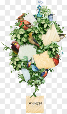 仙境元素森林系素材 创意树木小鸟