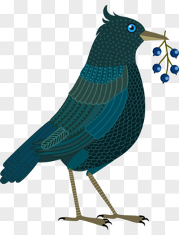卡通手绘蓝色花纹小鸟