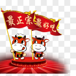 卡通手绘牛年新年嗨皮牛耶小牛庆新年免抠元素