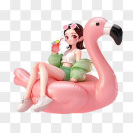 3D卡通小女孩骑在燕子上飞行免抠元素