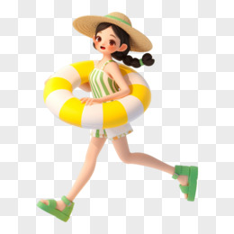 3D小女孩海边旅游元素
