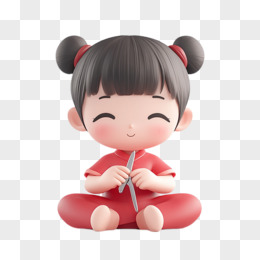 3D卡通小女孩抱着一碗汤圆免抠元素