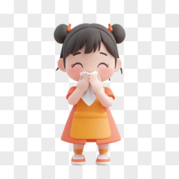 3D生病打喷嚏的小女孩免抠元素