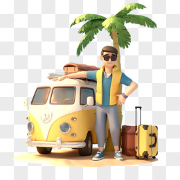 3D人物开车海边旅游免抠元素