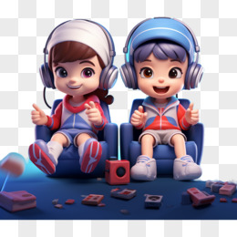 卡通3D小男生一起玩游戏元素