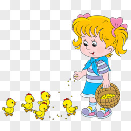 手绘卡通马尾辫小女孩吹气球免抠元素