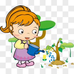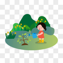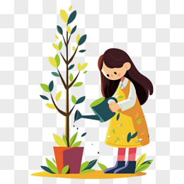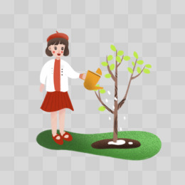 穿古装的可爱儿童植树节给树苗浇水卡通3D元素