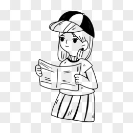 手绘免抠线稿女孩素材