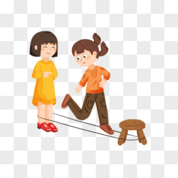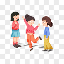 手绘童年游戏跳皮筋场景元素套图一