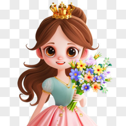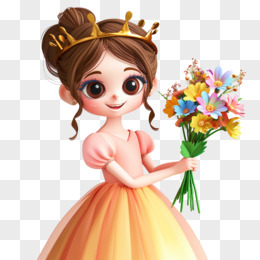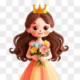 三八妇女节抱着鲜花戴着皇冠的可爱女孩形象