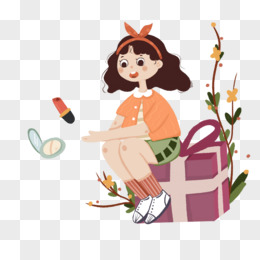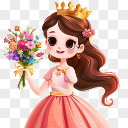 三八妇女节抱着鲜花戴着皇冠的可爱女孩形象