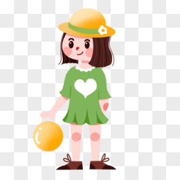 儿童节彩色气球带绳子红色卡通矢量金发红色裙子小女孩免扣 素材