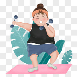 卡通手绘努力健身的小胖妹元素