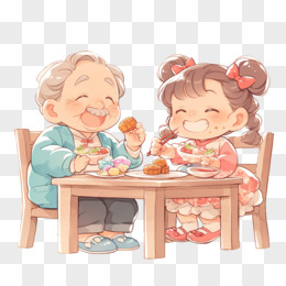 插画中秋爷爷和小女孩吃月饼免抠元素