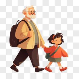 手绘小朋友扶老人插画素材