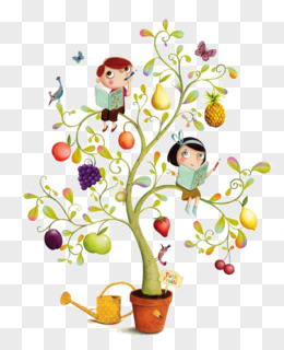手绘卡通种树浇水的小朋友免抠素材