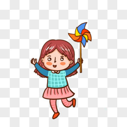 卡通手绘玩风车的小女孩免抠元素