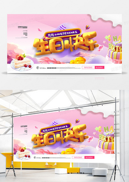温馨可爱小朋友生日快乐派对展板设计