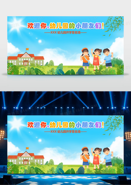 蓝色小清新卡通风欢迎你幼儿园的小朋友们幼儿园开学签名墙