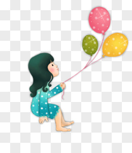 卡通手绘拿气球的女孩免抠素材